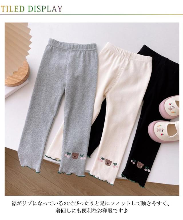 | 子供用のレギンス。 裾がリブになっているのでぴったりと足にフィットして動きやすく、着回しにも便利なお洋服です♪ | |