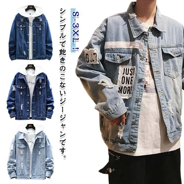 デニムジャケット ダメージ デニムジャケット メンズ Gジャン 春服 ジージャン 折り襟 春ジャケット デニムブルゾン ゆったり ブルゾン 秋服 大きいサイズ ビッグシルエット 20代 30代