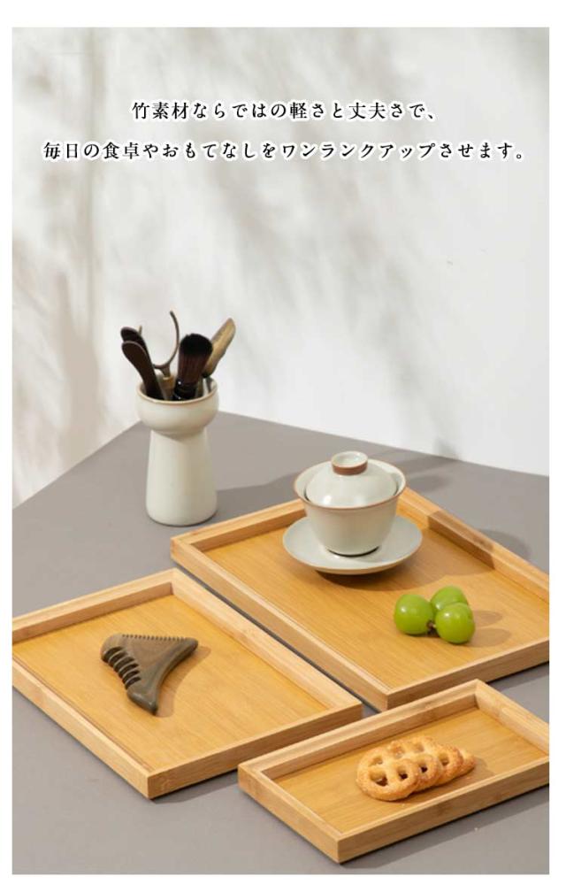 | 業務用にも家庭用にも◎お洒落で実用的な竹製の長方形トレー。 天然竹を選んで、安定感がありますし、変形しにくく、耐久性も優れています。 フチ部分で立ち上がりを加工ので、たくさんの豆皿をトレーで運ぶ時に心配しないです 竹素材ならではの軽さと丈夫さで、毎日の食卓やおもてなしをワンランクアップさせます。 ランチやカフェタイムにはもちろん、定食用や業務用サービストレーとしても大活躍。 | |