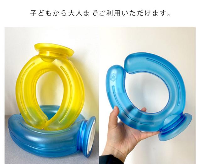 | ハンズフリー氷のう♪ 専用カバー付き!冷温両用! 新触感のネッククーラーです。背面の投入口から氷と水を入れればOK! 子どもから大人までご利用いただけます。 スポーツ、アウトドア、屋外作業のアイシングや室内での熱中症予防などいろんな場面で大活躍! U字型で、首以外にも肩・ひざ・太腿部など幅広くお使いいただけます。 お湯(60℃以下)を入れれば、冬場の防寒対策にも使用可能です。 | |