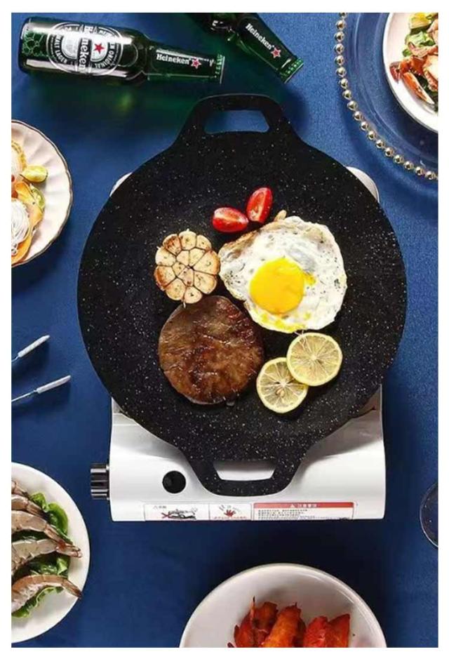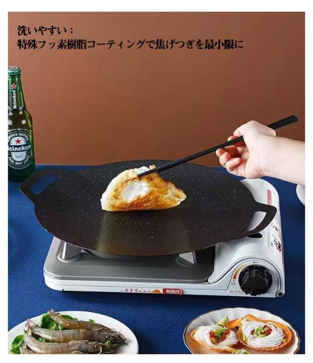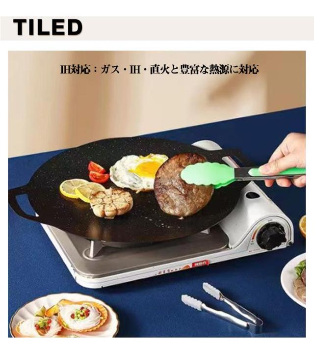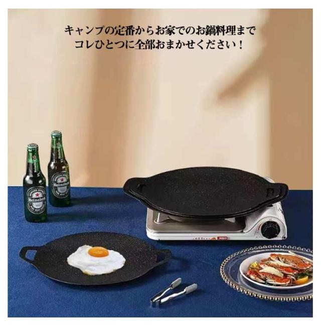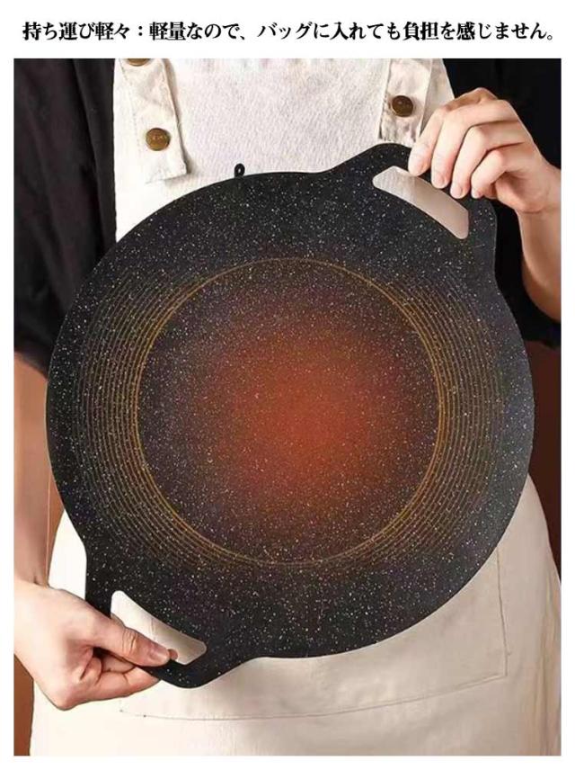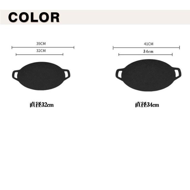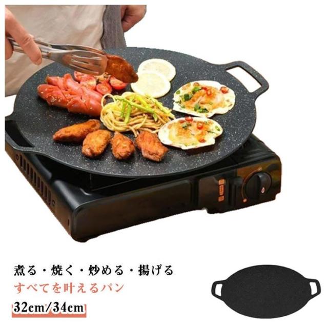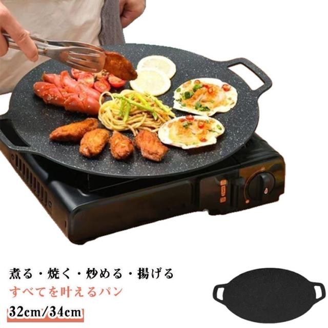 丸形 ラウンドグリドル パン IH対応 ガス火 パン グリルパン キャンプ 鉄板 グリルプレート 焼肉プレート アウトドア バーベキュー 直径32cm/34cm 家庭 焼く 揚げる 炒める 煮る 洗いやすい お手入れ簡単