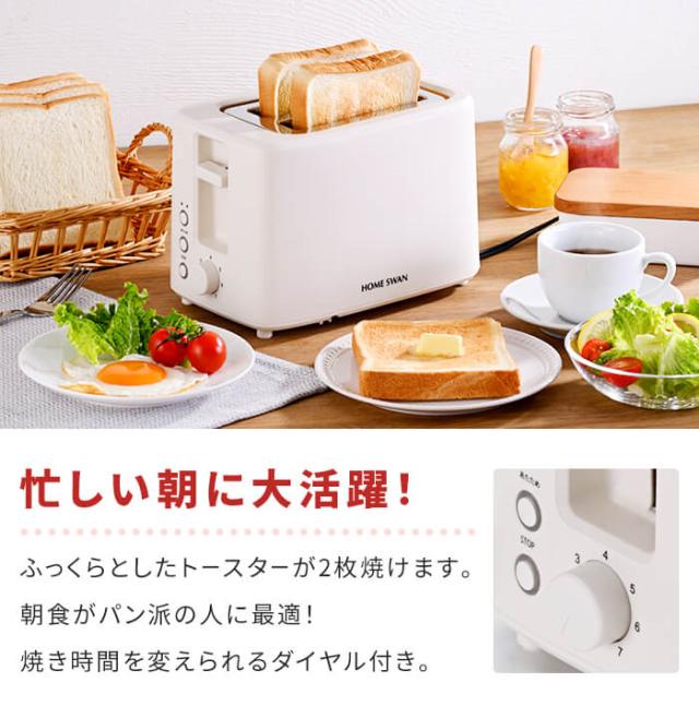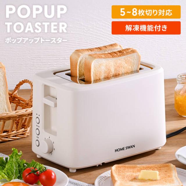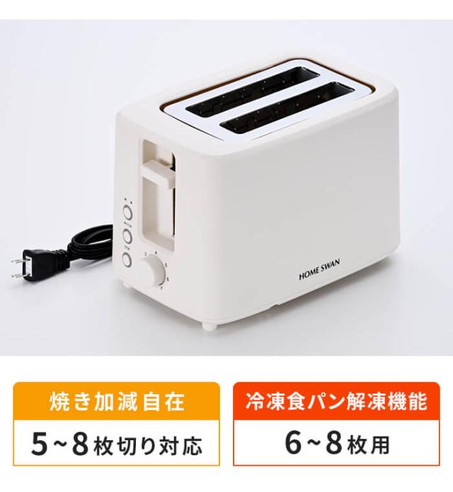 | ・トーストが同時に二枚焼けるポップアップトースター ・5〜8枚切りトースト対応 ・冷凍食パンの調理可能(6〜8枚切り) ・焼き目調整ダイヤル機能付き ・パンくず掃除ができる裏蓋開放機能 |