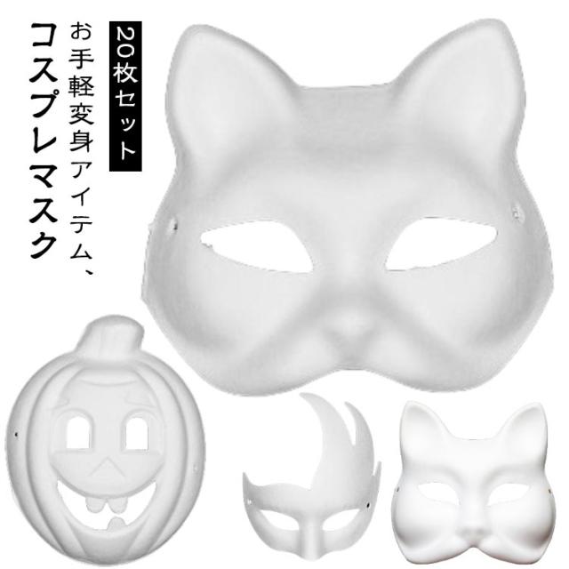 20枚セット 狐面 白 パーティ コスプレマスク 猫面 ペイント 紙 動物 20枚セット お祭り 飾り アニマルマスク ハロウィン クリスマス コスプレ 舞踏会 二次会 余興 イベント