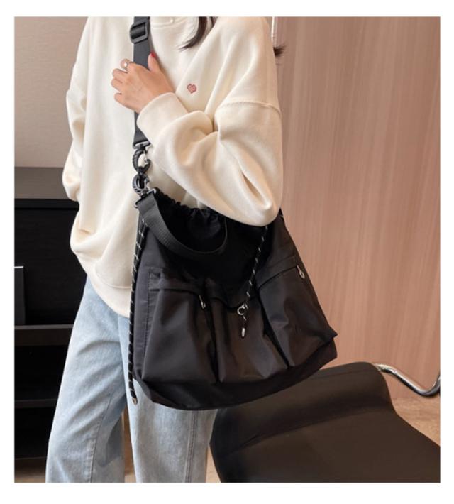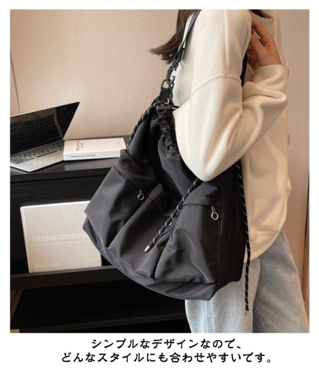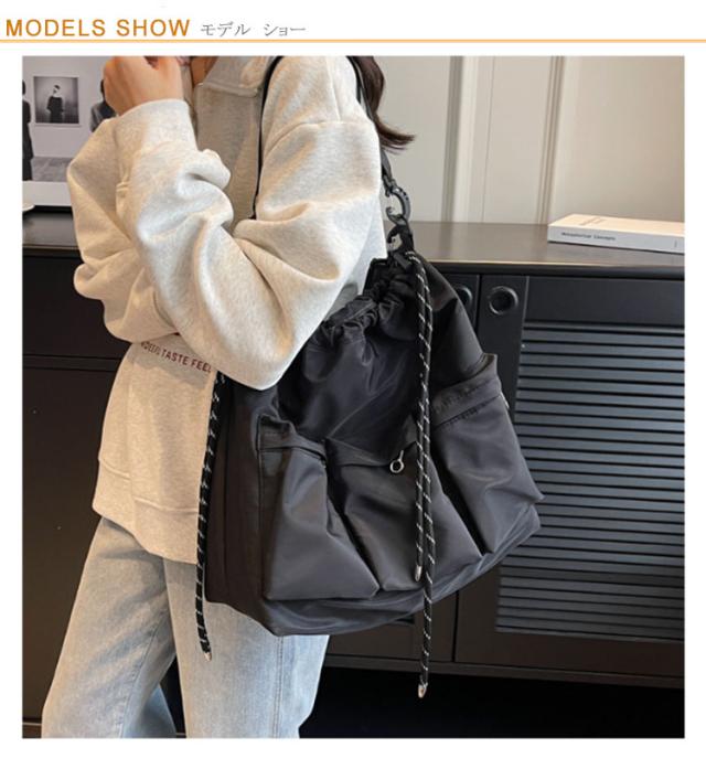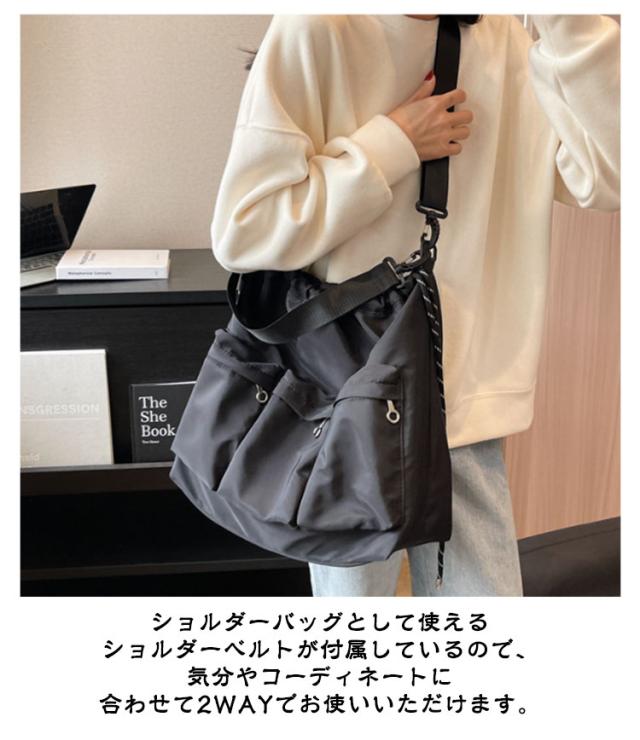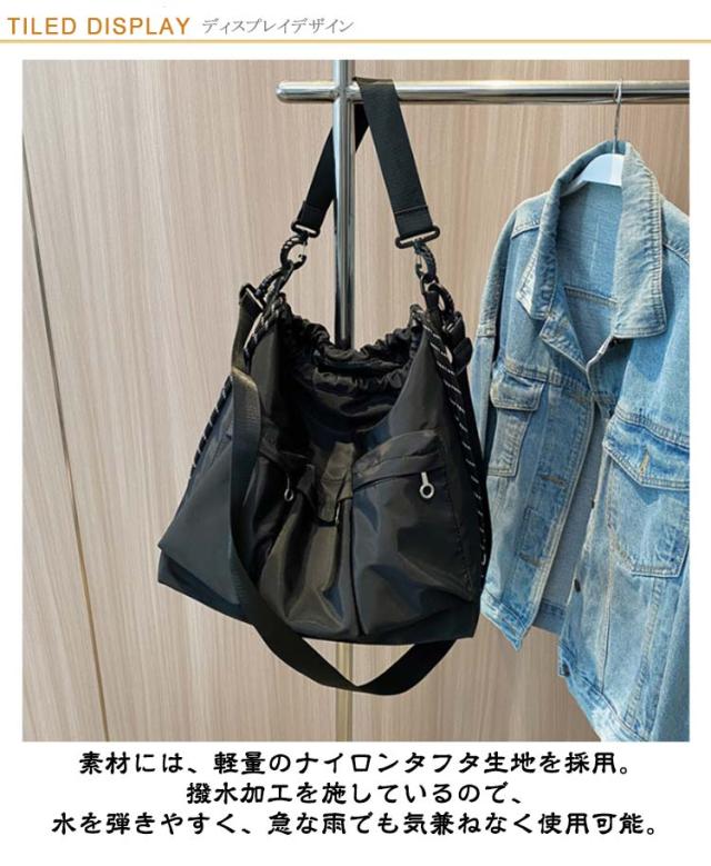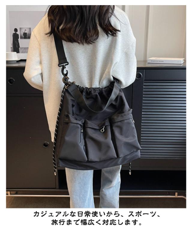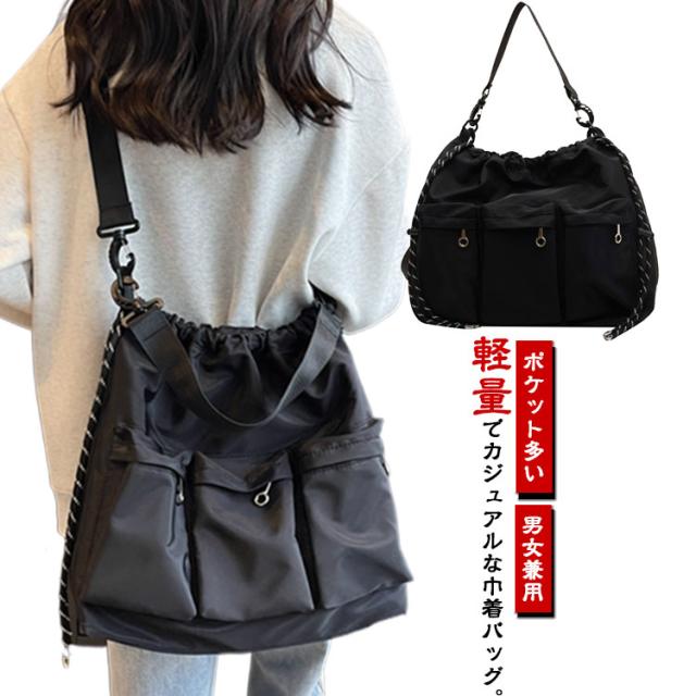 鞄 通勤 大容量 ナイロン 巾着バッグ 軽量 大きめ トートバッグ ナイロンバッグ メンズ ショルダーバッグ かばん 肩掛けバッグ 斜めかけ トート バッグ 巾着式 軽い 撥水 無地 レディース 通学 ママバッグ 多ポケット カジュアル トートバッグ 大人 可愛い 学生 韓国風 黒