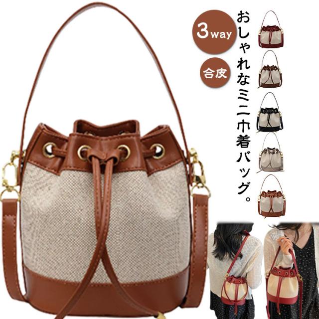 巾着バッグ 小さめ 合皮 鞄 大人 ショルダーバッグ レディース かばん ハンドバッグ 肩掛けバッグ おしゃれ トート バッグ 斜めかけ 韓国風 手提げバッグ キャンバス 軽い 巾着式 きれいめ 配色 無地 巾着バッグ 可愛い 学生 通勤 通学 ショルダー ミニバッグ