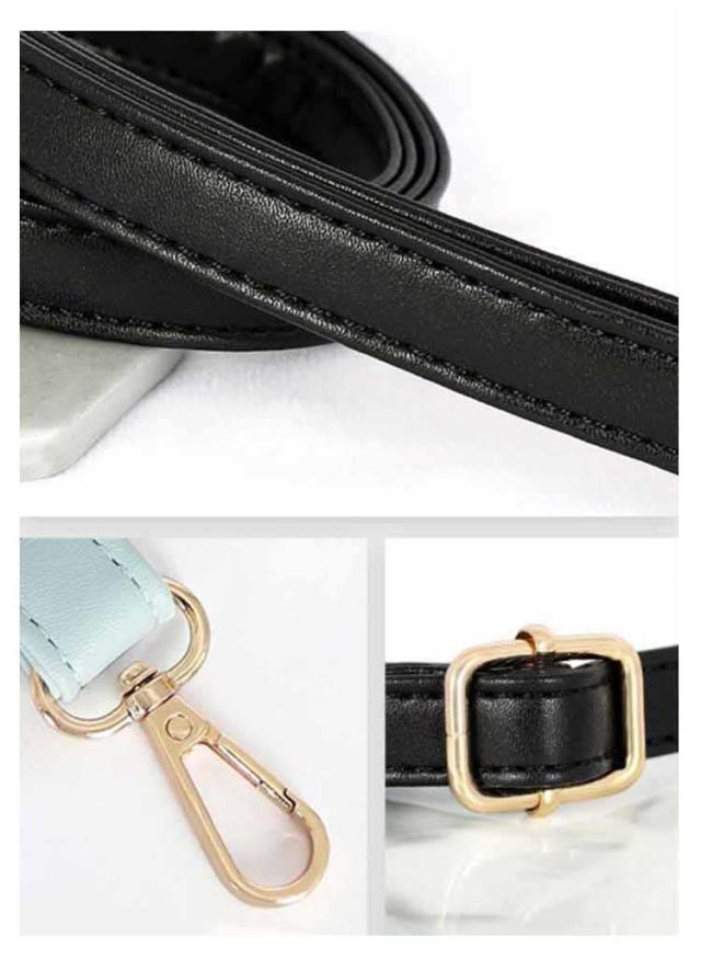 | 2cm細めベルト幅なのでスタイリッシュに見せる ストラップは70cm〜130cmまでの間で調整可能 金具もゴールド、ブラック、シルバー3タイプが選べる! 取り付けも簡単、ワンタッチで装着♪ | |