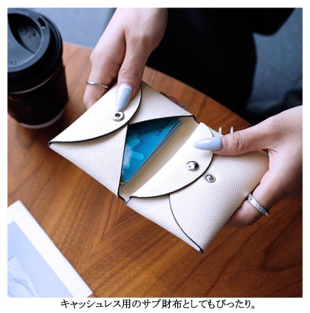 | 高級本革を使用!シンプルデザインの二つ折りカードケースです。 増えていくポイントカードや診察券、クレジットカードの収納におすすめです。 小銭も入れられて、お札も三つ折りに折って収納できます。 ミニバッグ用のお財布としてお使いいただけます。 キャッシュレス用のサブ財布としてもぴったり。 本革の張りのある手触り、耐久性もありますので長くご愛用いただけます。 ボタン付きで小銭が落ちる事もありません。 | |