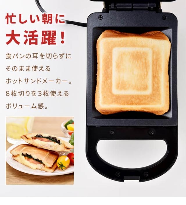 キーワード: ホットサンドメーカー 電気 耳まで ホットサンド 1枚焼き プレスサンドメーカー 厚焼き おうちカフェ 食パン サンドイッチ 朝食 時短調理 おすすめ フッ素樹脂加工 コンパクト 夏休み お昼ご飯 子供 こども 喜ぶ 新生活 一人暮らし