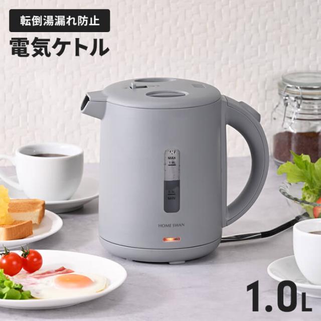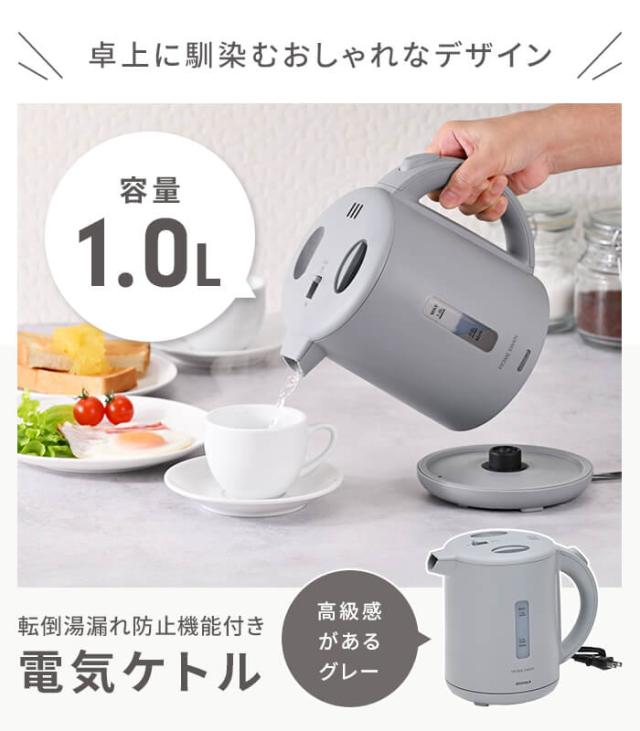 【値下げ】電気ケトル 1L 電気ポット 小型 ポット 1000ml 転倒湯漏れ防止機能付き 空焚き防止 自動電源オフ グレー 電気式 ケトル 湯沸かし 湯沸かしポット キッチン家電 かわいい おしゃれ 単身 新生活 一人暮らし