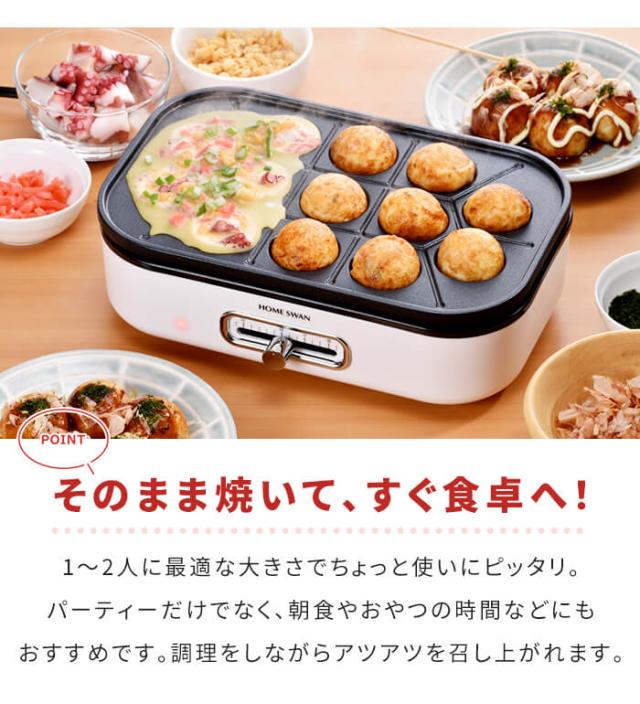 平プレートとたこ焼きプレートが付属した1〜2人用にちょうどいい小さなホットプレート。