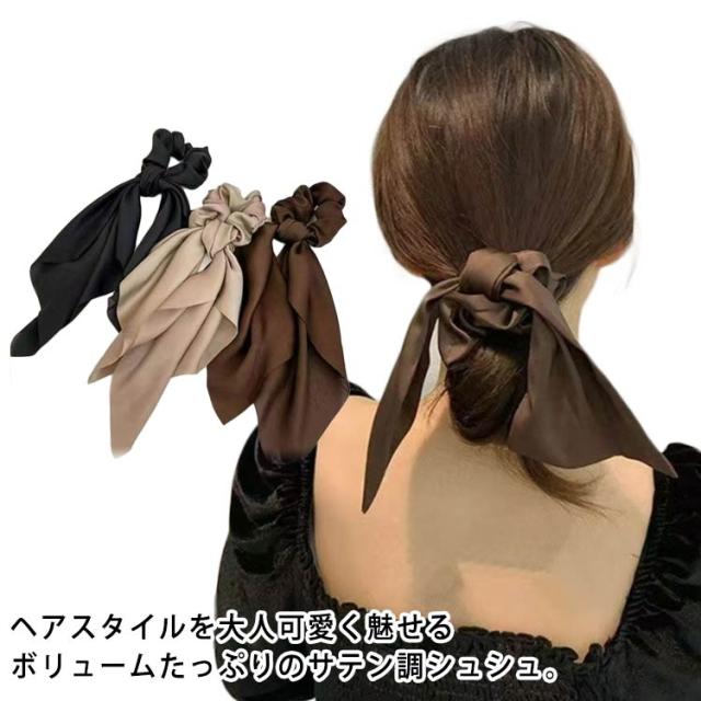 3色セット リボン シュシュ 大ぶり 大人女子 ヘアゴム まとめ髪 ヘアアクセ レディース リボン ヘアアレンジ 大ぶり 揺れる ヘアアクセサリー 3色セット ヘアアレンジ ポニーテール 髪飾り 存在感 ひらひら おしゃれ かわいい