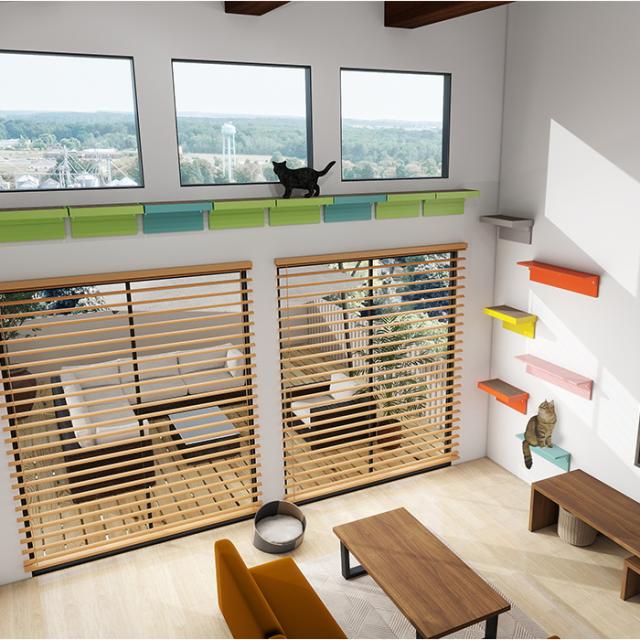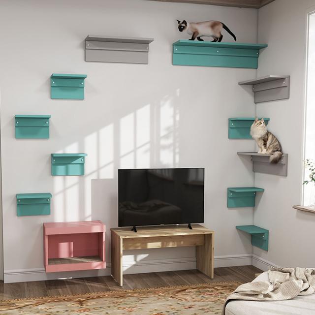 ランダムなサイズで遊び心のある通路を作ってみたり、ポールやハンモックなどのアイテムと組み合わせる工夫もしてみると自由気ままに過ごす猫にとっても満足なコーディネートが出来上がるかも!