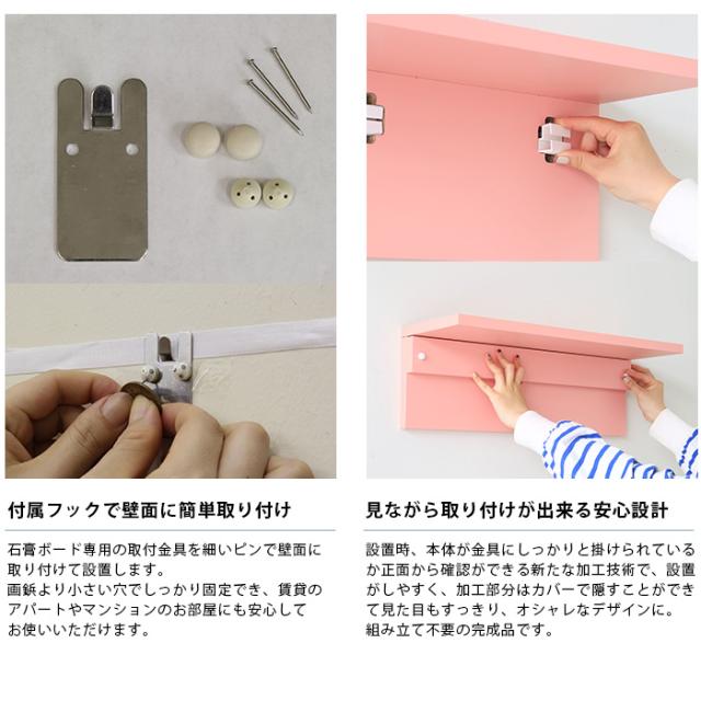 石膏ボードの壁に取り付けられる付属の取り付け金具でDIY初心者の方でも簡単に設置が可能です。