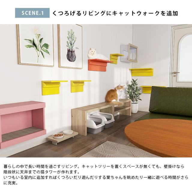 arneco アーネコ Board Walk S ボードウォーク キャットステップ キャットウォール 猫用 爪とぎ 壁掛け 壁棚 ウォールシェルフ 賃貸 キャットタワー カラフル