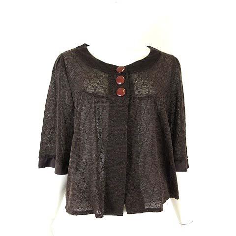 【中古】サブストリート SAB STREET カーディガン ニット シアー ラメ ラウンドネック 半袖 2XL 15 ダークブラウン