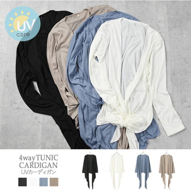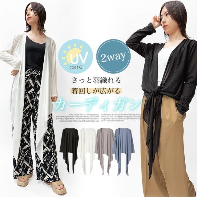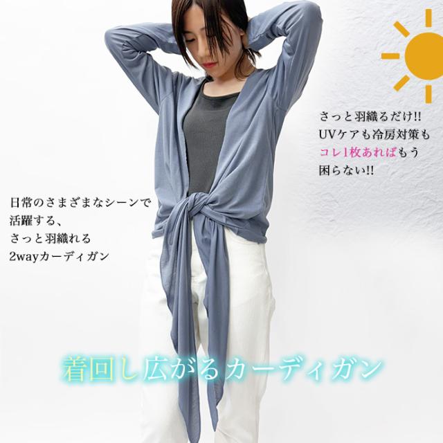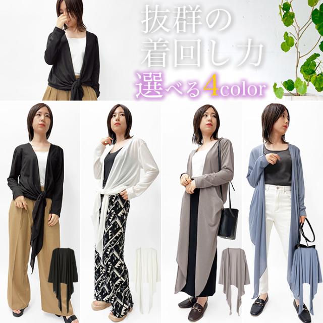 カーディガン ロングカーディガン チュニック 2way UVカット UVケア 羽織り 日焼け対策 紫外線対策 冷房対策 オフィス 体型カバー 薄手 前結び 着回し 楽ちん 無地 シンプル 長袖 レディース 送料無料 SHOT ショット