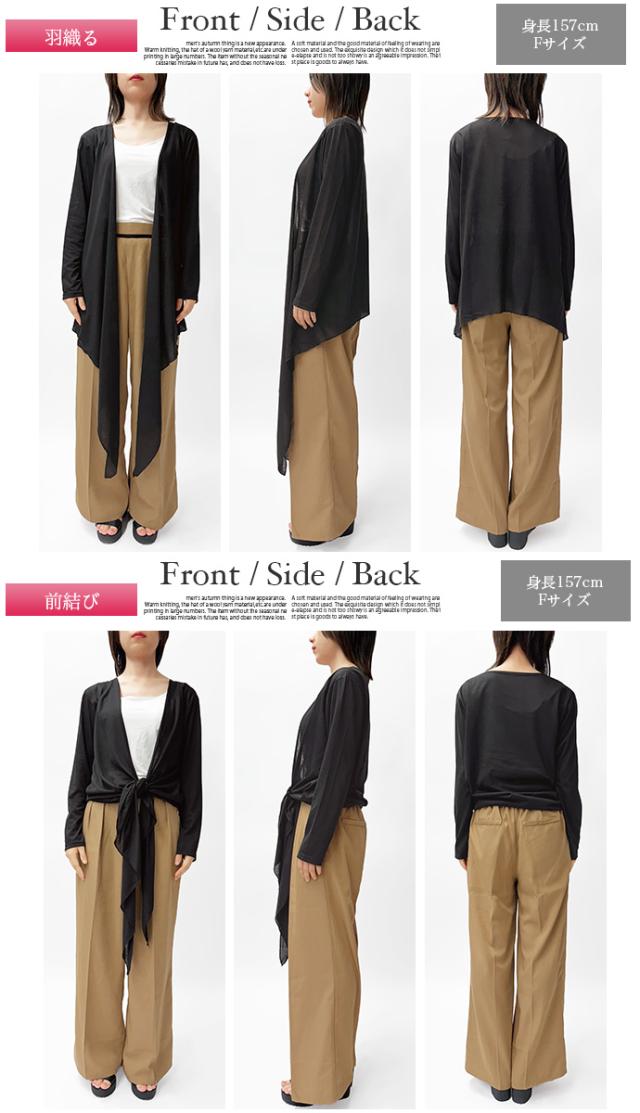 着丈(後ろ):65cm 胸囲:100cm 袖丈:55cm 裾幅:60cm