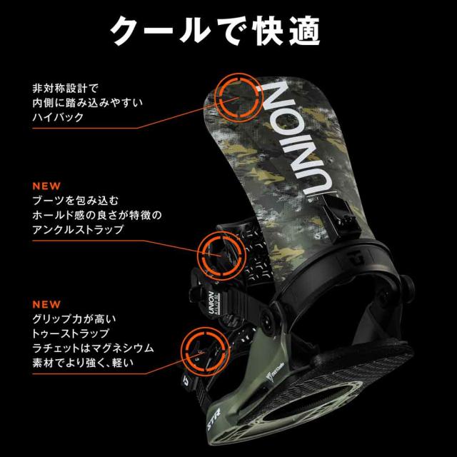 | スノーボード ビンディング スノボー バインディング メンズ UNION ユニオン STR ボード 25-26 グラトリ ブラック ホワイト カモ柄 板と同時購入で取付無料 | |