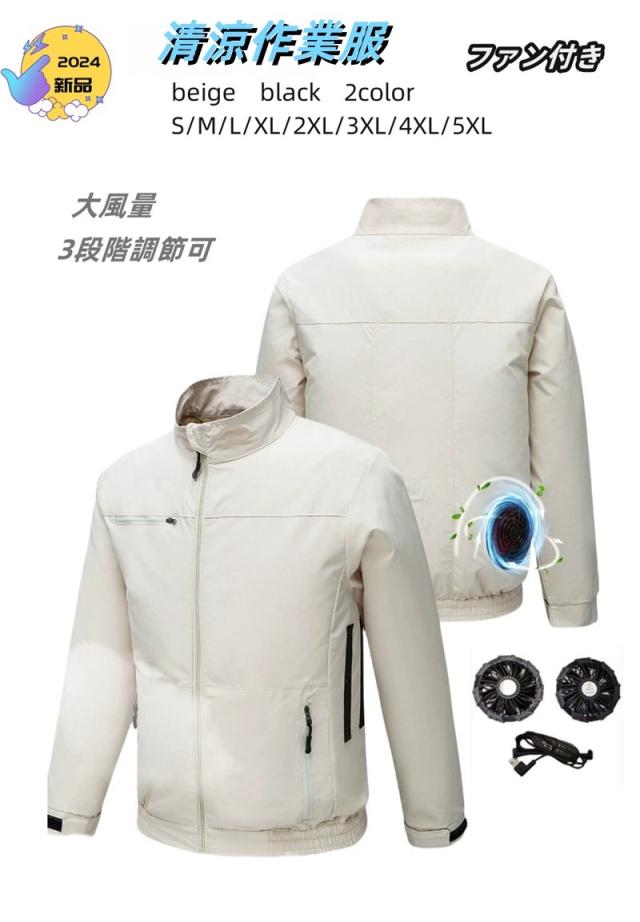 【空調ウェア】 服の中に外気を取り入れ、体の表面に大量の風を流すことにより、汗を気化させて、涼しく快適にすごしていただくための製品です。 使用するエネルギーもエアコンなどに比べて格段に少なく、環境にも配慮した製品です。 工場や屋外作業などエアコンの使用できないような環境でも、快適にすごしていただけるようになります。真夏に裾のスピンドルをギュッと閉め、ファンを回せば服の中はまさに極寒クーラー状態!そんな体感したいと思いませんか!