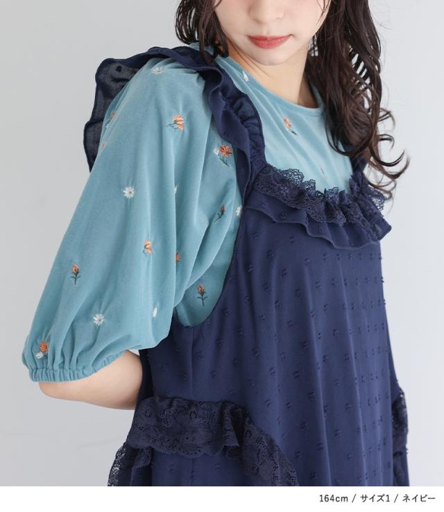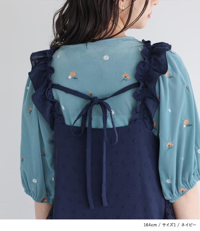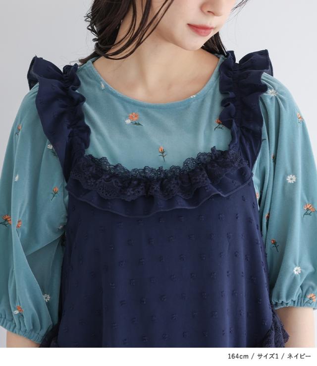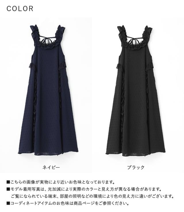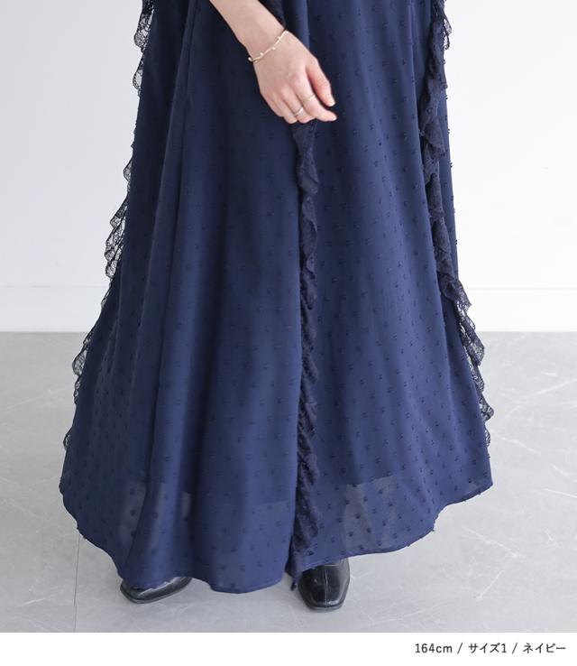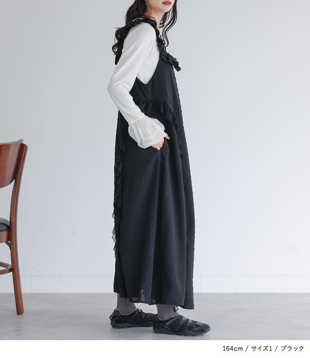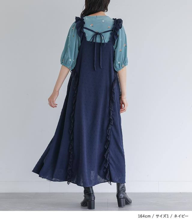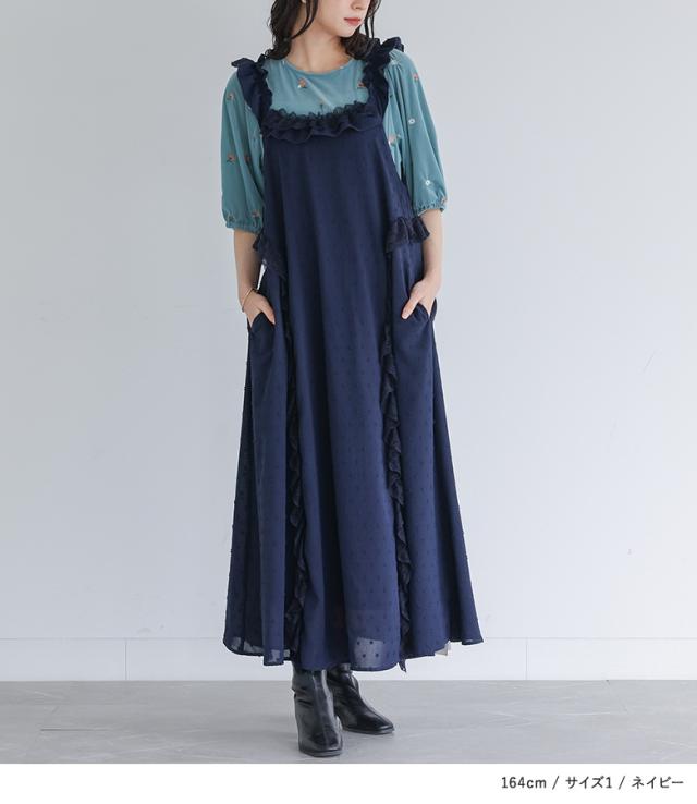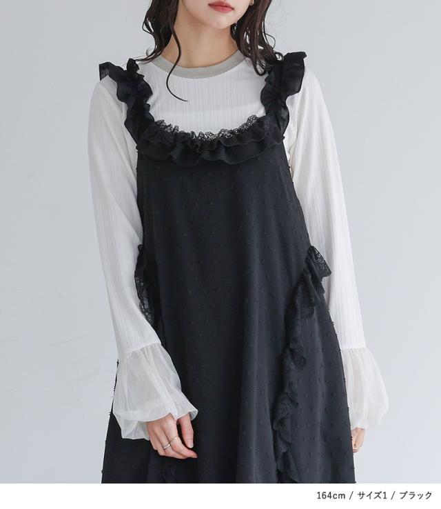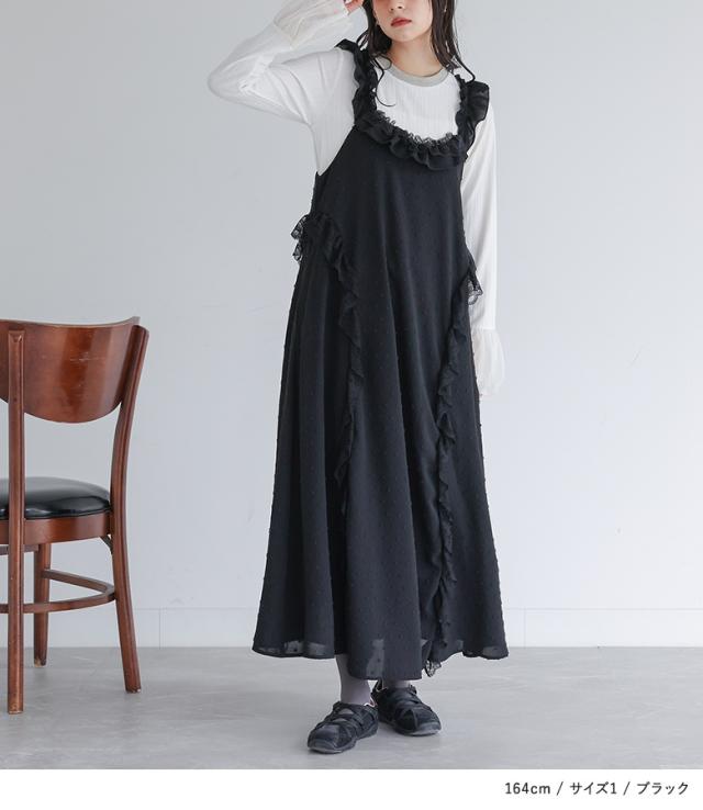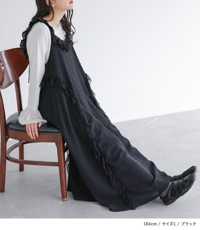 <冬新作>『ドビードットフリルキャミワンピース』【メール便不可】【20】[キャミワンピース ロング レディース レース フリル ドビードット フレア レイヤード 重ね着 春 夏 秋 冬]