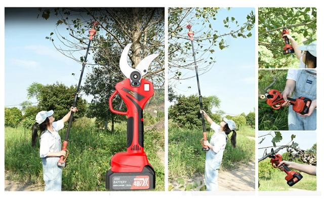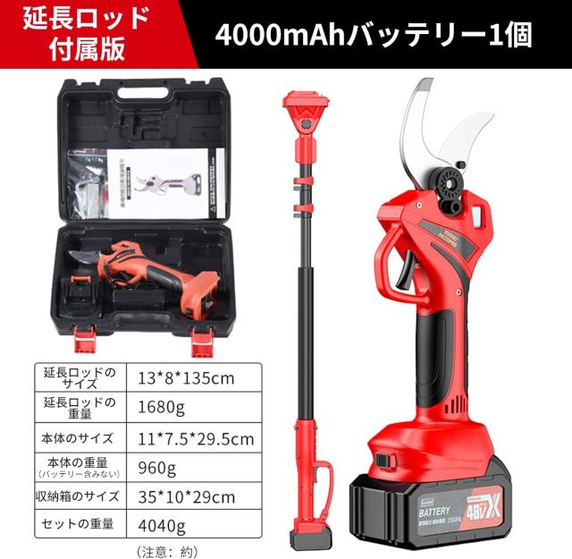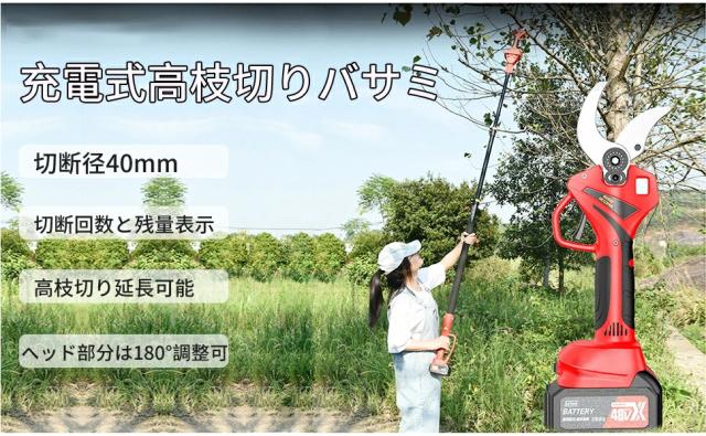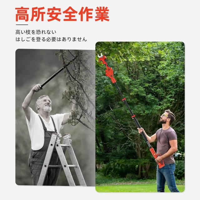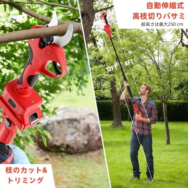 剪定ハサミ 電動 高枝切りバサミ 充電式 2-IN-1 高枝切りばさみ ブラシレスモーター搭載 コードレス 剪定ばさみ 電動チェーンソー 高枝切り 剪定鋏 枝切ハサミ 7500mAhリチウム電池付き PSE安全認証取得済み (高枝切り延長可能)
