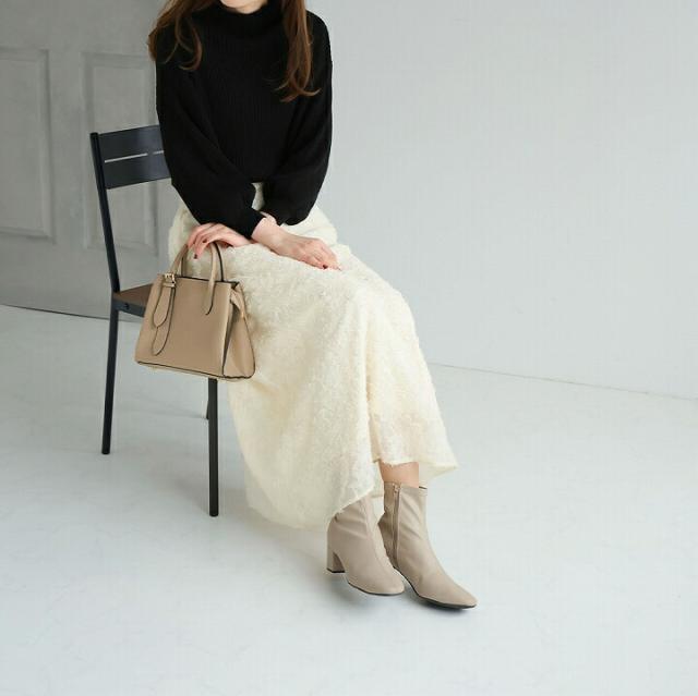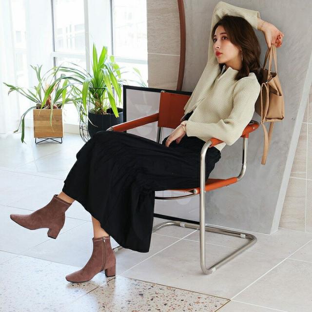 ・スタイルアップが叶うストレッチブーツは、スカートにもパンツにもバランス良く合わせやすく大人っぽいコーデに仕上がる1足。