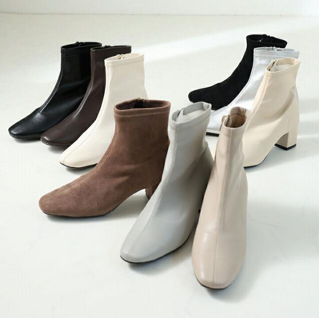 【全品10%OFFクーポン】 ブーツ レディース 秋新作 Vivian ブーツ レディース 秋新作 ショート ストレッチ スクエアトゥ チャンキーヒール ブラック 黒 通勤 オフィス SS 3L ソックスブーツ メタリック シルバー V6270AW