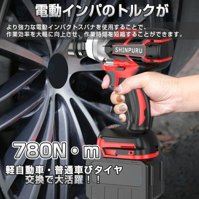 高出力のブラシレスモーターを使用しており、企画上ではフル充電の時、最大トルクは780N.m、回転速度0-3000rpm(min-1)に達し、空振り回転数は4200r/minです。ナットをやさしく緩め、不正交換が可能です。タイヤ交換に対応可能です。この電動インパクトレンチがあると時間短縮、作業効率アップになって、疲労度が減り、予想以上に作業が捗り、整備士にとっては必需品です。さらに、過電流保護、過電圧保護、過熱保護、充電および放電保護により、安全で耐久性があります。