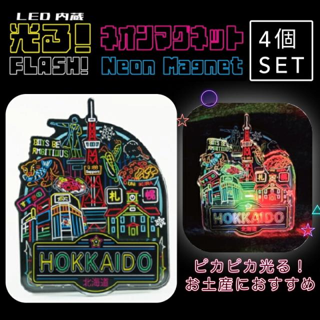 【4個】フォーカート 北海道 ネオンマグネット (お土産 ギフト プレゼント グッズ ご当地 贈り物 限定 おすすめ 磁石 人気 北海道 観光 カラフル ネオン 時計台 シマエナガ テレビ塔 インバウンド 記念品 )
