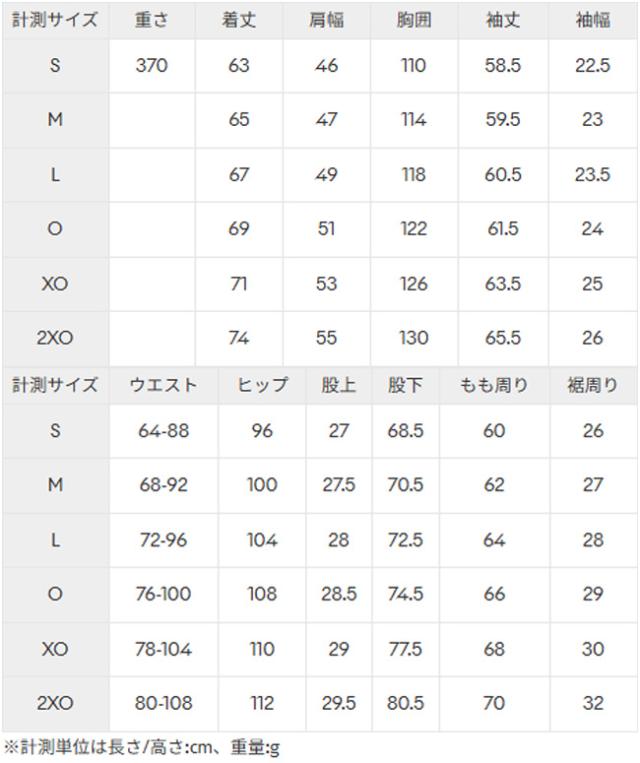 サイズ:身長 / 胸囲 / 胴囲