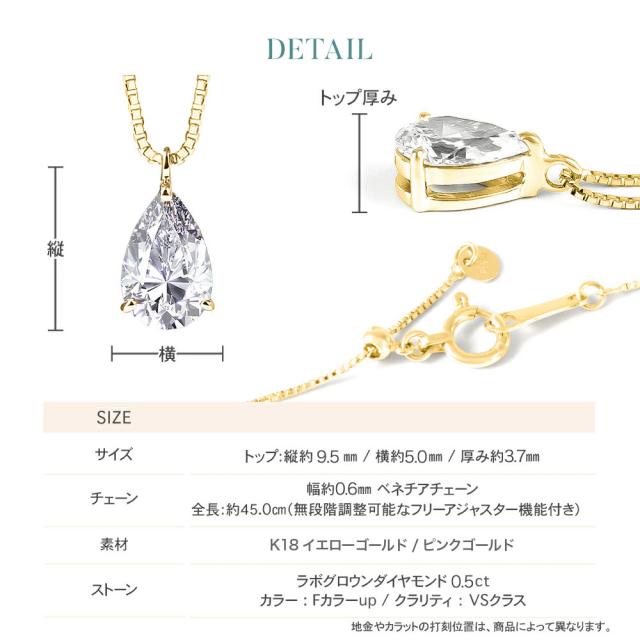 ダイヤモンド ネックレス 0.5ct 一粒 ペアシェイプ 雫 ゴールド レディース ダイヤモンドネックレス ダイヤネックレス 一粒ダイヤ プラチナ K18 ピンクゴールド ラボグロウン ジュエリー アクセサリー シンプル ブランド 誕生日 プレゼント 女性 ギフト 母の日