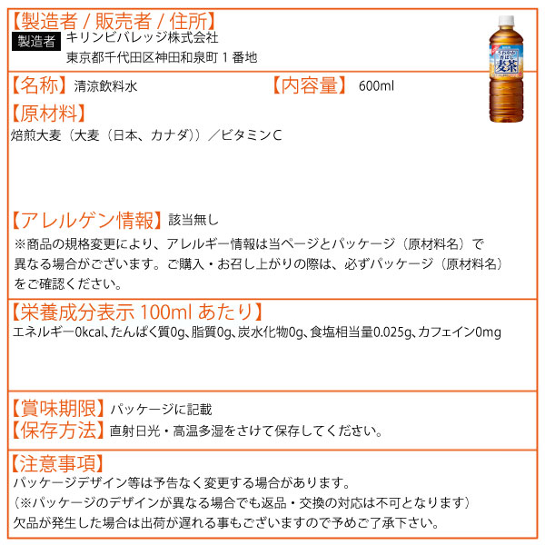 キリン さわやか香ばし麦茶 600ml 24本(24本×1ケ—ス)PET 二条大麦 六条大麦 ブレンド茶 深煎り麦 カフェインゼロ 熱中症対策