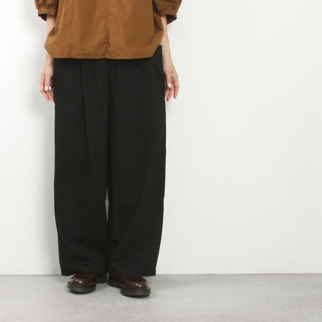 リラックス感がありながらもすっきり見え、シーズン長く穿けるライトオンスが嬉しいポイントです。両サイドについたポケットはさりげなくコーディネートに馴染んでくれます。引き締めカラーの大人なブラックおすすめです。