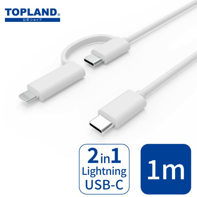 CtoC + CtoLightning 2WAYケーブル スマートフォン充電 ノートパソコン充電 PD パワーデリバリー 60W データ転送 1m【トップランド 公式ショップ】