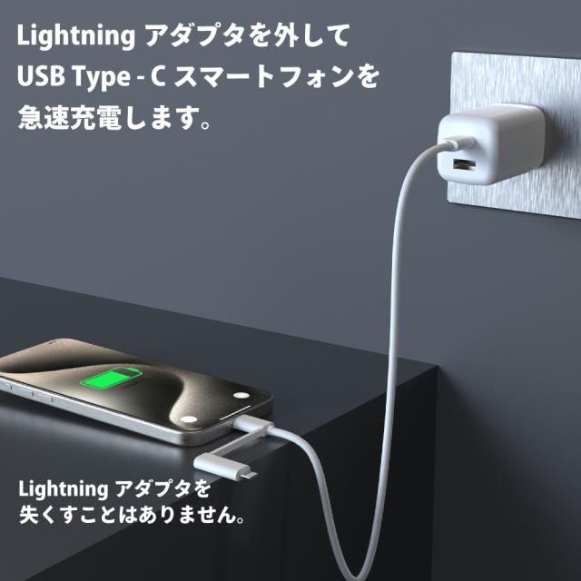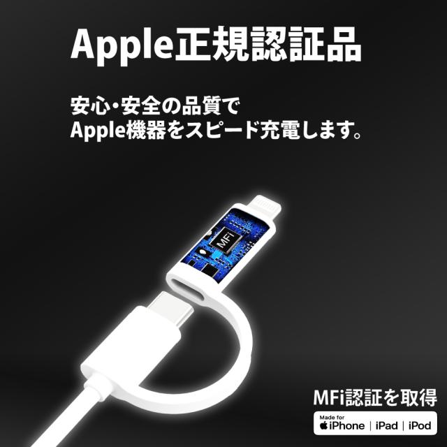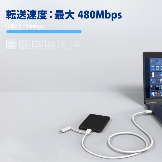 CtoC + CtoLightning 2WAYケーブル スマートフォン充電 ノートパソコン充電 PD パワーデリバリー 60W データ転送 2m【トップランド 公式ショップ】