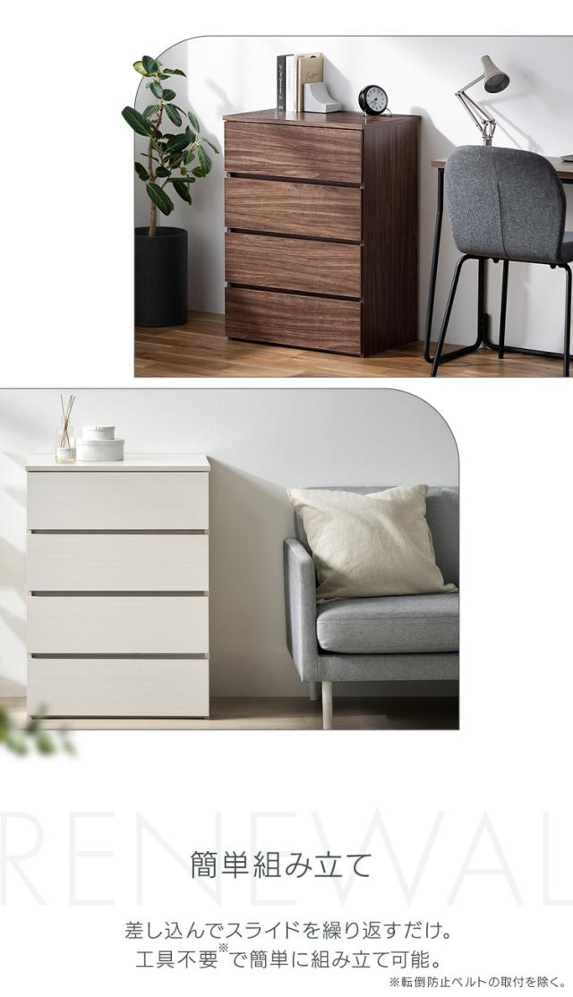 (検索用:チェスト 4段 タンス ローチェスト 幅59 奥行39 衣装ケース 引き出し 組立簡単 ウッドチェスト 工具不要 たんす 4967576787017 4967576787024 4967576787031)