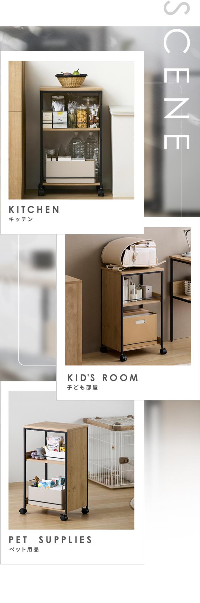 (検索用:ワゴン キッチンワゴン キャスター付 ワイド 幅約29.5cm 3段 天板 キッチン ラック 収納 目隠しワゴン HIROBIRO 4967576797467)
