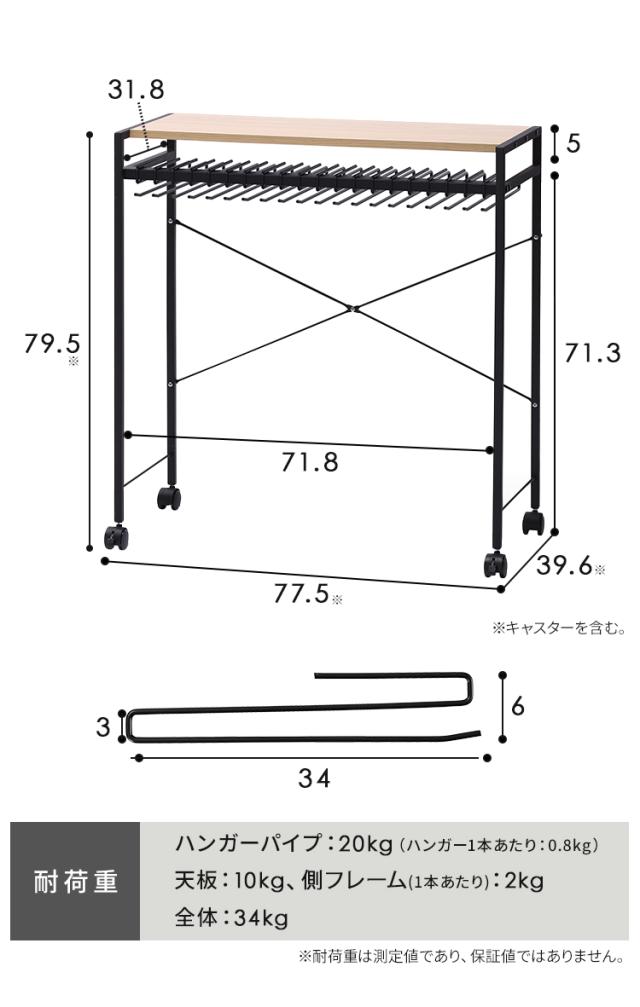 ハンガーバイプ:約20kg(ハンガー1本当たり:0.8kg)