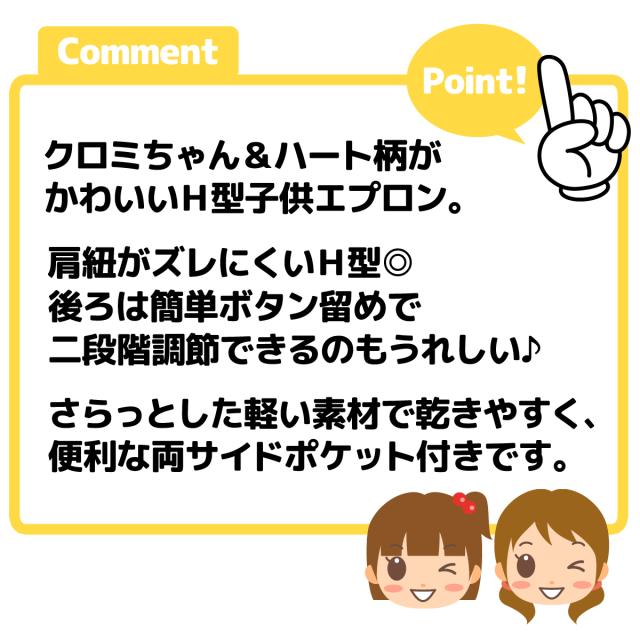 H型子供エプロン。肩紐がズレにく