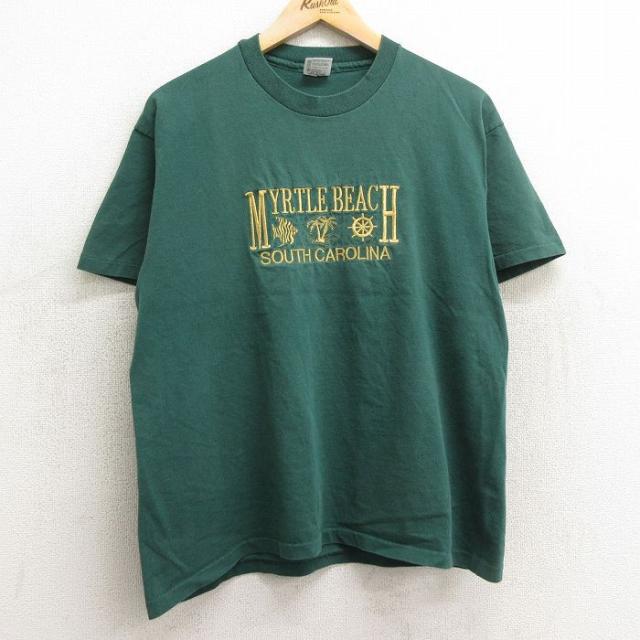 【商品名】 L★古着 ウィルソン 半袖 ビンテージ Tシャツ メンズ 90年代 90s ワンポイントロゴ ロング丈 コットン クルーネック USA製 緑