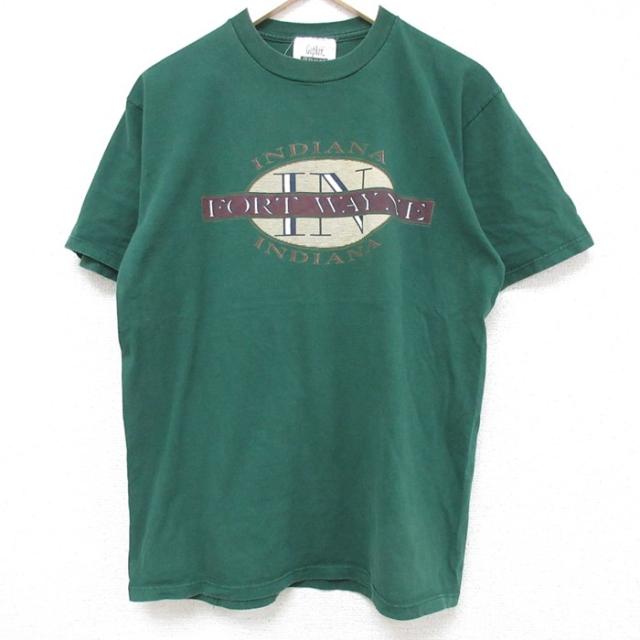 古着 ウィルソン 半袖 ビンテージ Tシャツ メンズ 90年代 90s ワンポイントロゴ ロング丈 コットン クルーネック USA製 緑 グ 中古 古着