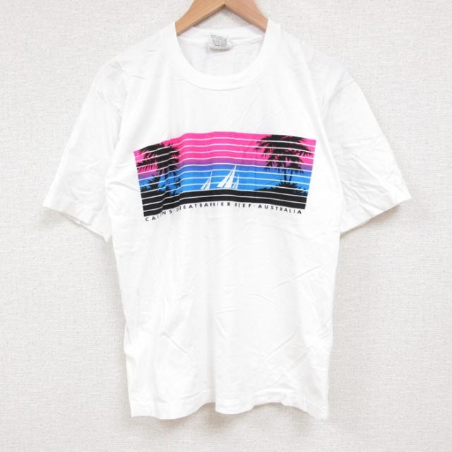 古着 ヘインズ Hanes 半袖 ビンテージ Tシャツ メンズ 80年代 80s ride mule 染込プリント コットン クルーネック USA製 オレ 中古 古着