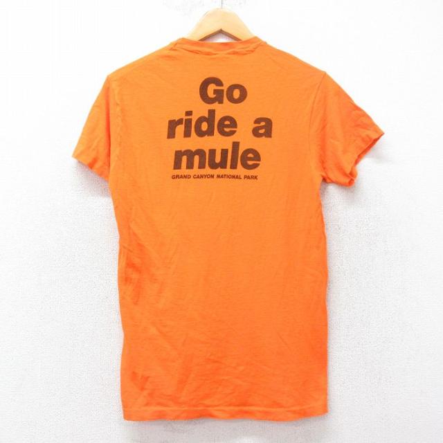 【商品名】 S★古着 ヘインズ 半袖 ビンテージ Tシャツ メンズ 80年代 80s ride mule 染込プリント コットン クルーネック USA製 オレンジ