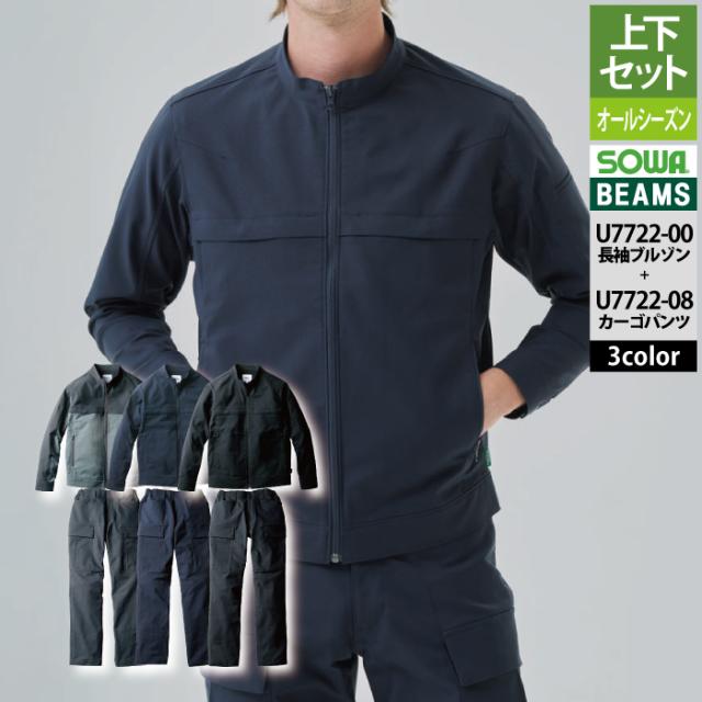 桑和 SOWA 作業服 上下セット U7722-00 長袖ブルゾンS-3L と U7722-08 カーゴパンツ S-3L オールシーズン 作業着 作業ズボン BEAMS ビームス