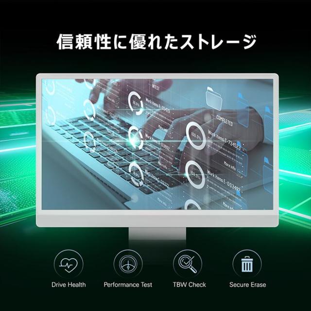 読み取り速度は最大5,000MB/秒、書き込み速度は最大3,200MB/秒。 NVMe 1.4サポートにより、より高いパフォーマンス、低レイテンシー、低消費電力を実現。 1TBから4TBまでの大容量ストレージオプションが用意されています。 | |