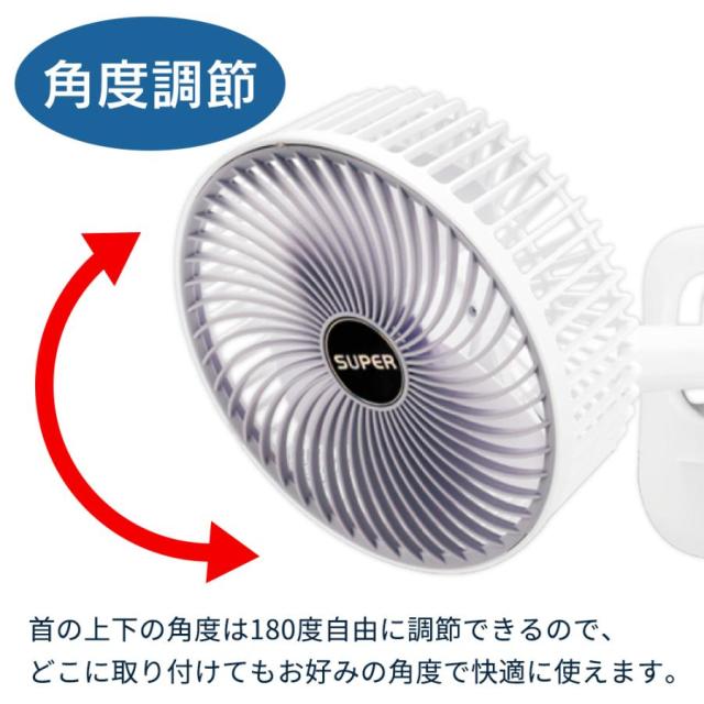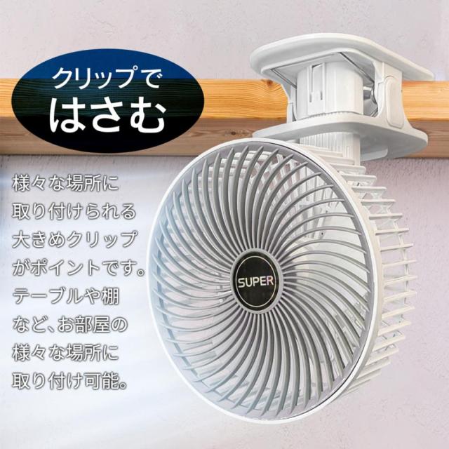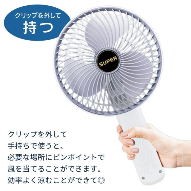 クリップ部分がそのままスタンドになり、卓上ファンにも!