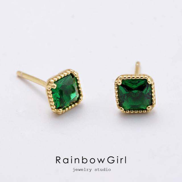 ピアス レディース 50代40代 アレルギー対応 スクエア 一粒ダイヤCZ エメラルド 小ぶり 四角 14kゴールド 人気 誕生日 母の日 30代20代