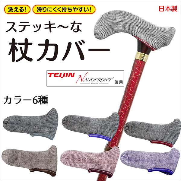 高吸水 高吸着 TEIJIN ナノフロント使用 杖カバー ステッキーな杖カバー 日本製 滑りにくい ズレにくい ぴったりフィット 肌摩擦軽減 帝人 ナノフロント