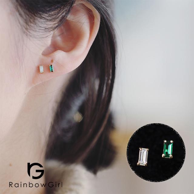 ピアス レディース 一粒ダイヤ CZ 小ぶり 四角 エメラルドカラー 14kコーティング/シルバー925 ゴールド 人気 誕生日 母の日 ギフト 祝い 女性
