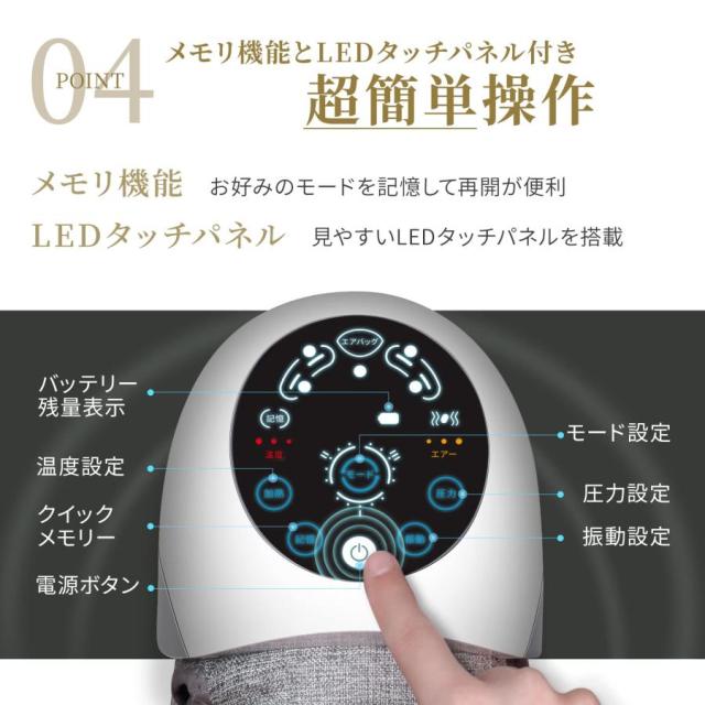 LEDタッチパネルで操作が簡単。就寝前など暗い場所でも操作可能。メモリー機能もあり、メモリー機能も搭載されており、最適なギアを保存して次回直接呼び出せるので、お年寄りにも便利です。